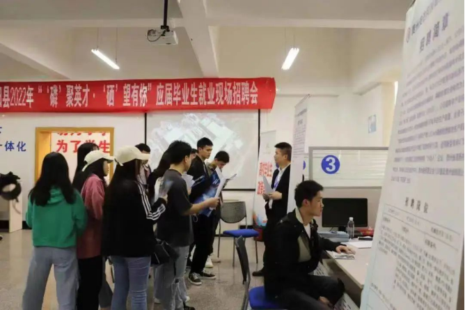 当天,一夫新材料科技、胜威凯洋化工、安达科技等6家开阳企业还在学工楼三楼举办了“‘磷’聚英才·‘硒’望有你”应届毕业生就业现场招聘活动。