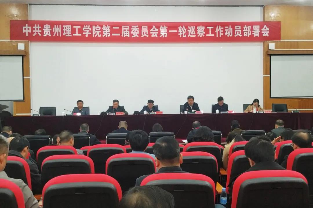 本网讯(陈洲/文 练佳鑫/图)根据学校党委关于巡察工作的统一部署,2020年10月20日上午,中共贵州理工学院第二届委员会第一轮巡察动员部署会在喀斯特报告厅召开。校党委委员曾羽、苏向东、吴次南、高勇、胡兴灿、贺梦依、左柏州、李朋出席会议。会议由党委副书记吴次南主持。