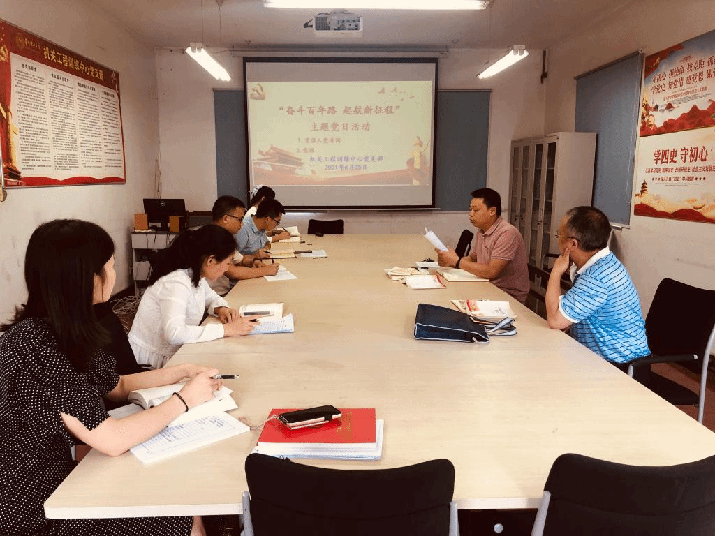 机关工程训练中心党支部625日下午在会议室开展了奋斗百年路 启航新征程主题党日活动,支部全体党员及入党积极分子参加。
