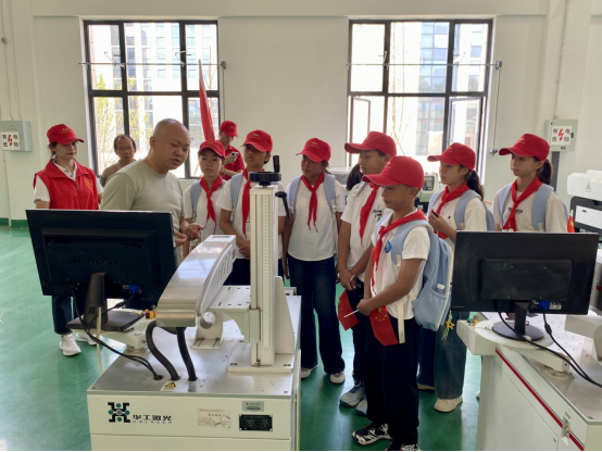为了进一步让青少年感受到科学技术与人工智能的飞速发展,提高他们的科学素养,并激发其观察能力、探索能力和动手能力,中心精心安排了赵曜、周琴2位老师带领同学们参观了激光加工、机器人拼装和掐丝珐琅制作等多个实训场地。