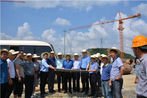调研组一行深入到新校区建设项目现场进行实地踏勘,查看施工情况,了解工程进度。在施工现场,曾羽对照鸟瞰图,详细询问和查看基础建设工作进展,听取施工现场工作人员对当前工作情况的介绍。随后,调研组与施工单位、场平单位、监理单位的代表召开工作对接会,指挥部相关工作组负责人向调研组详细介绍了新校区建设推进情况及场平、地勘和施工情况。