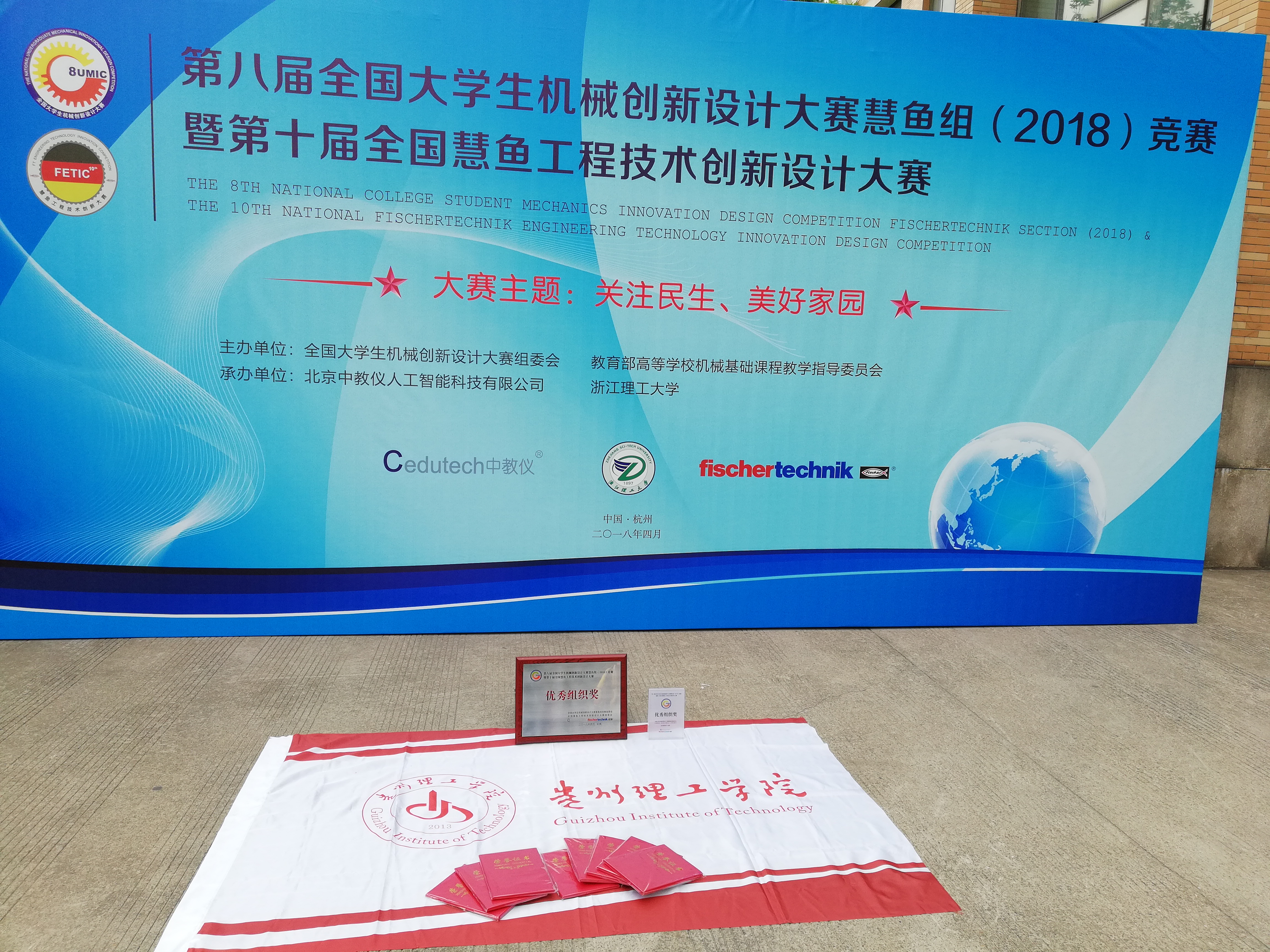 420-22日,第八届全国大学生机械创新设计大赛慧鱼组(2018)暨第十届全国慧鱼工程技术创新设计大赛在浙江理工大学举行。贵州理工学院共有四支队伍参赛,收获二等奖两个,三等奖两个,并荣获最佳组织奖。