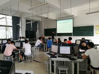 图为钟晓锋老师指导学生进行竞赛规则解读