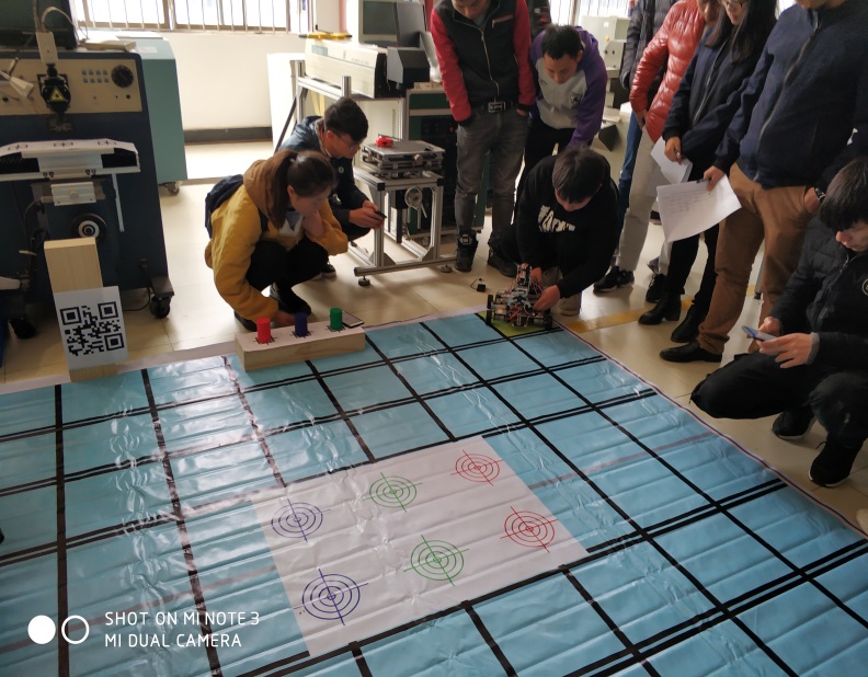 经过现场抽签和机器调试,选手们指挥无碳小车和智能机器人在各自赛道、赛场上一竞高下。裁判老师根据竞赛规则对参赛无碳小车现场赛道运行情况,智能机器人自主行走、识别二维码、寻找物料、按颜色搬运物料等功能完成情况进行测量、考核、评分、录像。然后对总分排名前五的参赛团队进行现场答辩,对作品设计、工艺成本分析、工程管理和竞赛方案等方面进行综合考评。