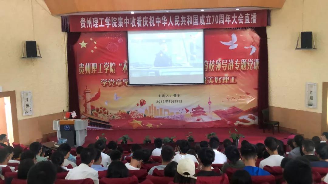 升旗仪式后,我校师生在喀斯特会议厅、贵安校区分会场、逸夫小礼堂、各学院会议室等会场分别集中收看直播盛况。习近平总书记在庆祝中华人民共和国成立70周年大会上的讲话振奋人心、凝心聚力,阅兵中展示的新武器、新装备、新方队以恢宏、磅礴之势,一次次震撼着理工师生的心灵,他们时而鼓掌,时而欢呼,时而赞叹。随后的群众游行环节将观看活动引向深入。