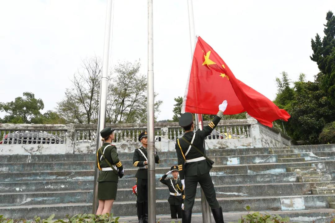 国旗飘扬,国歌嘹亮,党委书记曾羽作国旗下讲话,全体成员齐声《歌唱祖国》,表达对祖国真挚美好的祝福,共同祝愿伟大的祖国更加繁荣富强。