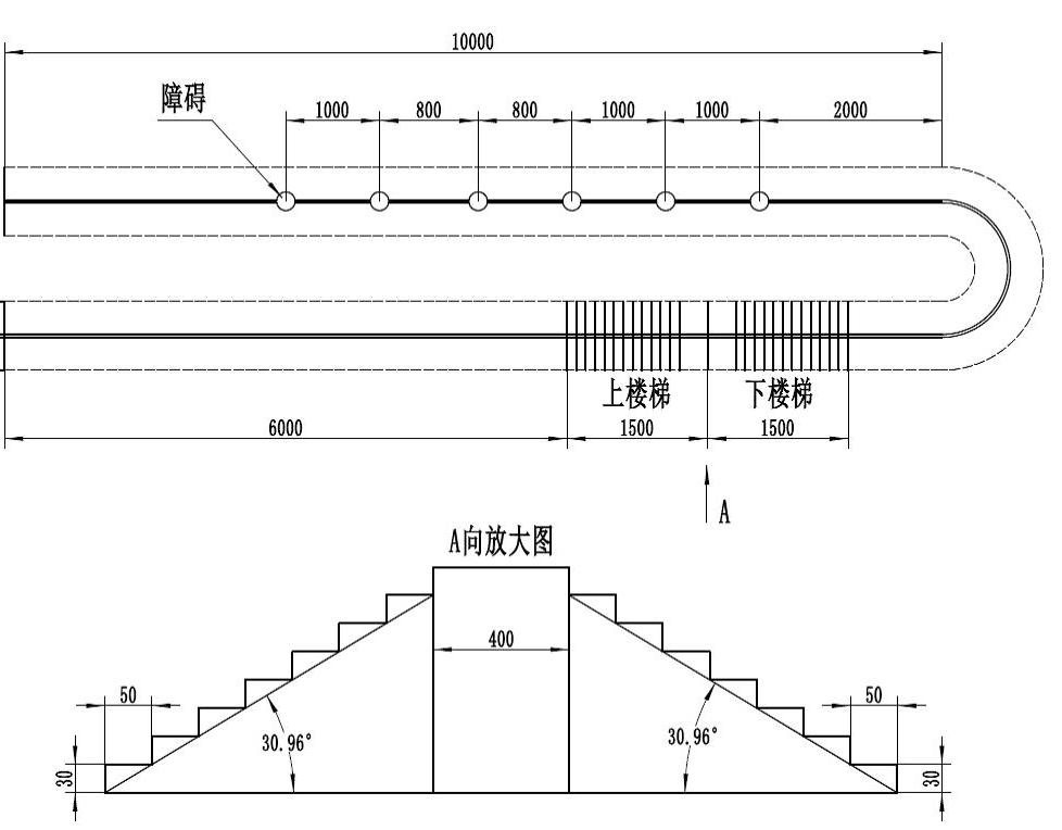 赛道全长20.7米(如下图),赛道分为两车道,道宽为350mm。
