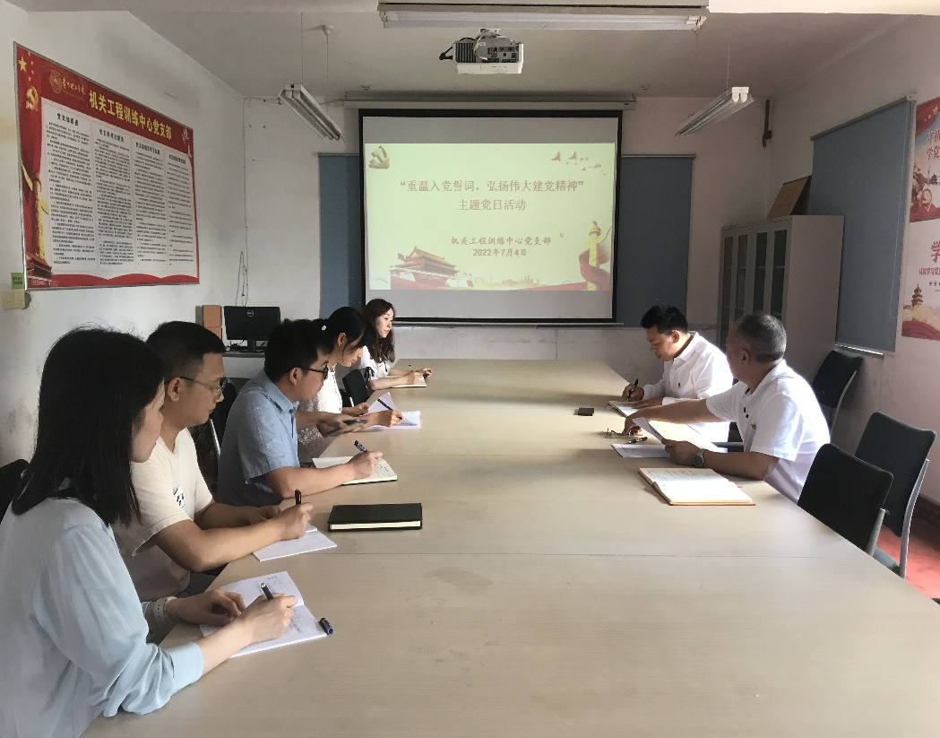 机关工程训练中心党支部开展“重温入党誓词,弘扬伟大建党精神”主题党日活动