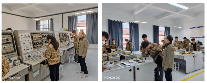 课上,同学们全神贯注投入动手实操中,领导主动融入,亲手拿起工具参与制作,期间与同学们亲切交谈,详细问询课程设置、学习进度及实践收获,并对任课老师的专业教学表示肯定。课后,针对发现的个别加工操作、接线问题等情况,领导现场反馈,建议优化教学设计,加强过程指导,并叮嘱学生注重安全、勤练技能。学生就实训中的难点和改进建议踊跃发言。