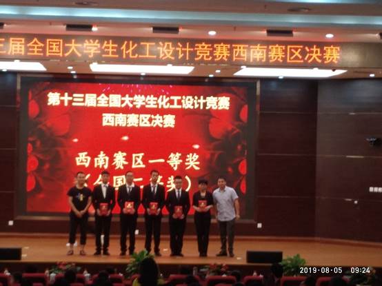2019年8月2日至5日,第十三届全国大学生化工设计竞赛西南赛区决赛在贵州大学举行,经过三天激烈的角逐,我校化学工程学院的“建木队”荣获全国二等级(西南赛区一等奖)