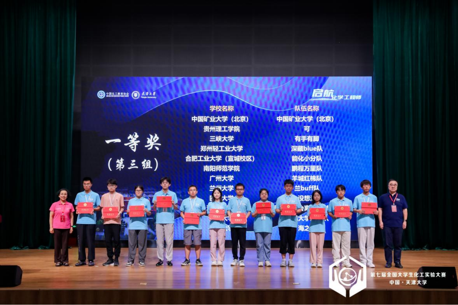 8月8日至11日,由中国化工教育协会主办、天津大学承办的“东方仿真∙欧倍尔”杯第七届全国大学生化工实验大赛总决赛在天津大学北洋园校区举行。贵州理工学院化学工程学院2021级学生王孝平、付会单、毛兴宇3名同学组成的参赛队荣获团体一等奖!这是我校化工学子首次冲入该赛事的全国总决赛,也是贵州省高校在该赛事中首次获得全国一等奖。比赛期间,指导教师张妙鹤担任了大赛实验报告撰写监督裁判。