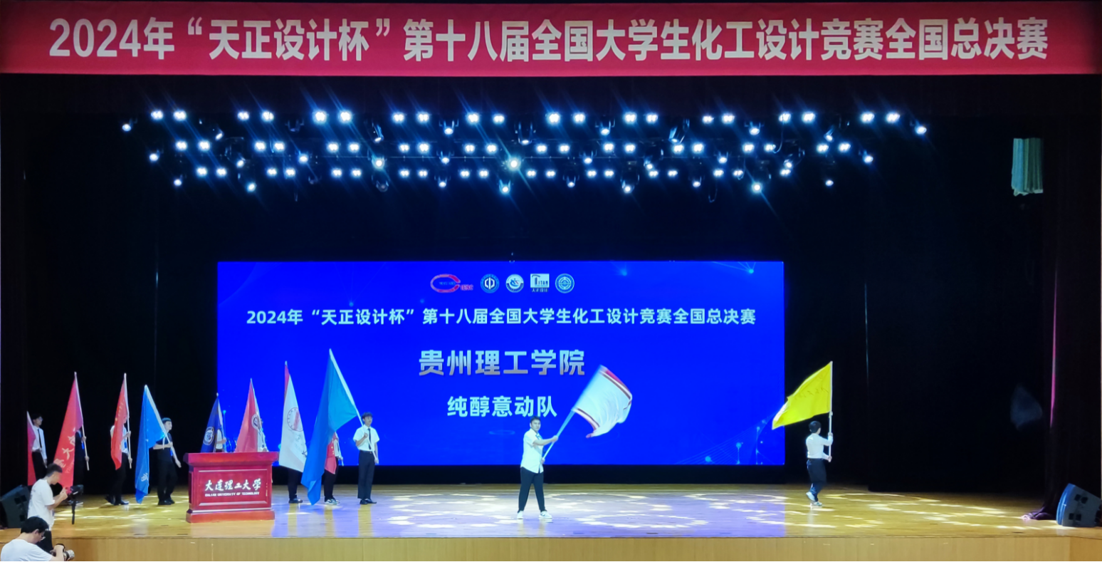 2024年8月16日-22日,第十八届全国大学生化工设计竞赛全国总决赛在大连理工大学顺利举行,贵州理工学院化学工程学院“纯醇意动”队(学生:徐辉、王孝平、贾利维、何小亭、杨艳,指导教师:曾谦、蒋东海、周理明、罗孜、李琴)取得突破,从本届参赛的450所高校近1.9万人组成的3685支队伍中脱颖而出,首次进入全国总决赛,并斩获一等奖!