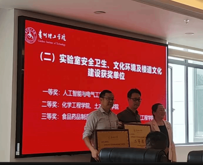 经过学校综合评审,学院凭借“组织效能高、师生参与度广、实际成效显著”的突出表现,荣获全校“优秀组织奖”。同时,在“实验室安全卫生、文化环境及楼道文化建设评比”中,学院以规范的安全管理制度、整洁的实验环境、特色化的安全文化墙设计,荣获二等奖。
