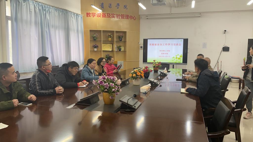 12月1日上午,实验室与设备管理处王婷婷处长带队,实验室与设备管理处、化学工程学院、材料与能源工程学院、食品药品制造工程学院、资源与环境工程学院等部门相关人员,赴贵阳学院学习调研。贵阳学院教学设备及实验管理中心主任刘烨,副主任余磊、实验安全管理科科长郭易波等出席了交流会。