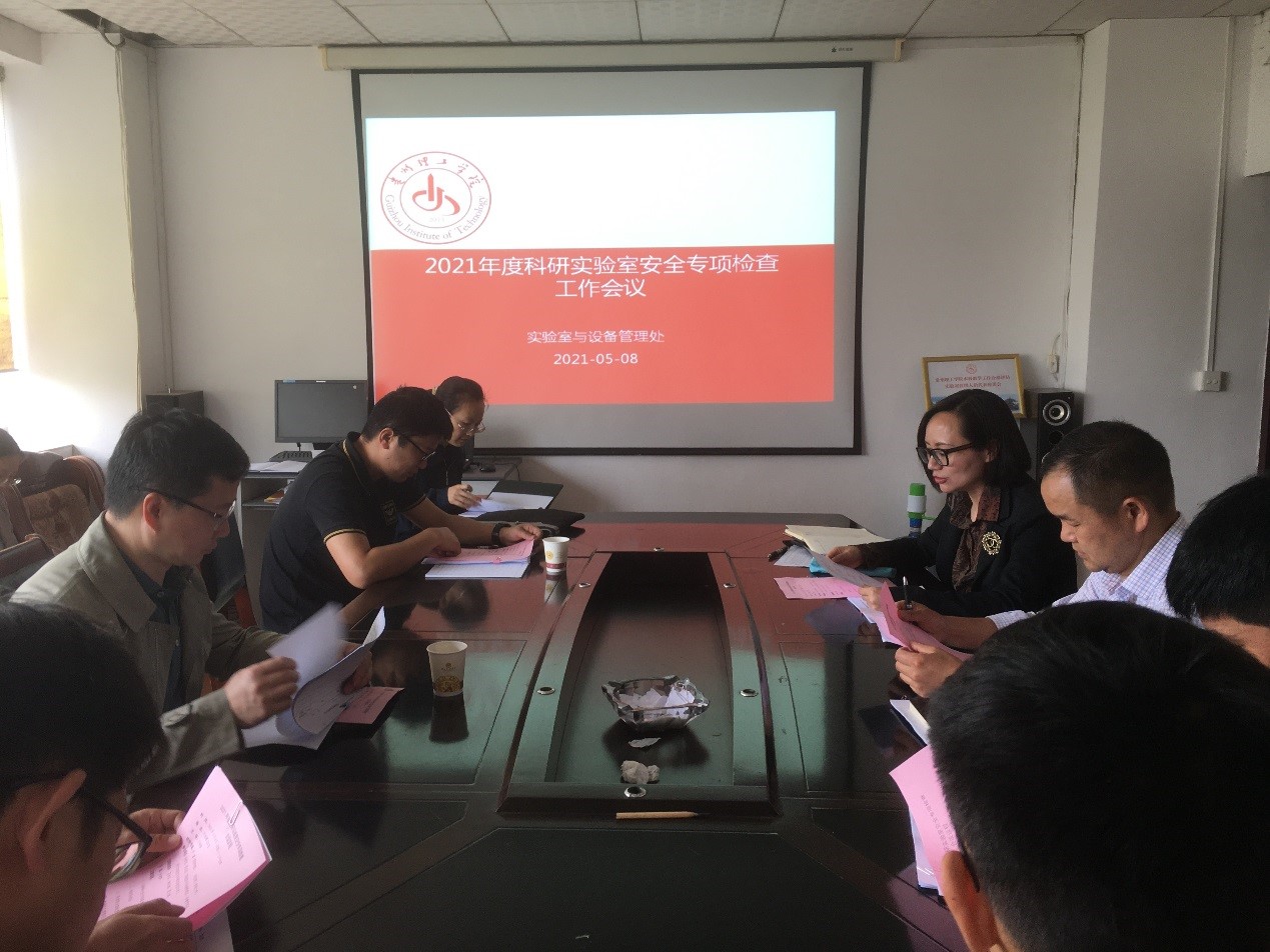 为进一步提升科研实验室安全管理水平,确保常态化疫情防控中科研实验室安全运行,保障师生员工人身安全及校园和谐稳定,根据《贵州省省教育厅办公室关于组织开展2021年度高等学校科研实验室安全检查工作的通知》文件要求,5月8号由副校长林长松、校长助理莫立坡带领实验室与设备管理处、校外专家以及各学院实验室负责人对科研实验室进行安全专项检查工作。