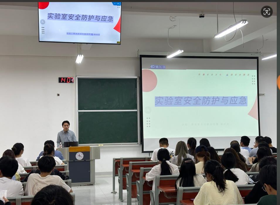 此次演练活动内容主要分为两场。一场是来自无锡赛弗新文化传媒有限公司培训高级讲师翟永志在酝知楼阶梯教室126作了题为《实验室个人防护与应急操作》的培训讲座。翟老师重点对高校实验室基础安全、化学品安全、用气安全、用电安全、个人防护与应急处置等进行了培训,并与参训人员仪器分享了高校实验室安全事故案例。培训现场,副校长安艳玲强调各单位要以“实验室安全文化活动月”活动为载体,一是要提高政治站位,增强做好实验室安全工作的紧迫感,深刻认识实验室安全工作的极端重要性,强化责任落实,落实实验室安全长效工作机制;二是要夯实应急演练与教育培训成果,以培带训,切实增强师生实验室安全意识,提升师生的应急防范能力。