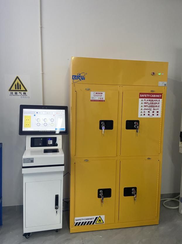 该系统由智能存储柜与危化品管理软件两部分构成,覆盖校内四家涉化单位的5个危化品暂存间及21个使用管制类危化品的实验室,实现了对危险化学品的全流程、全周期智能管理。