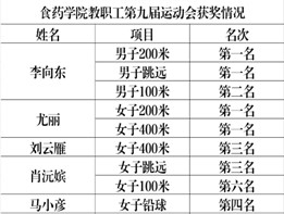 通过校运会的备战和比赛,增强了学院师生们锻炼身体的热情,展现了参赛运动员顽强拼搏的精神。希望每位食药人,把运动的热情和精神延伸到今后的学习和工作中,不断挑战自我,争创佳绩!