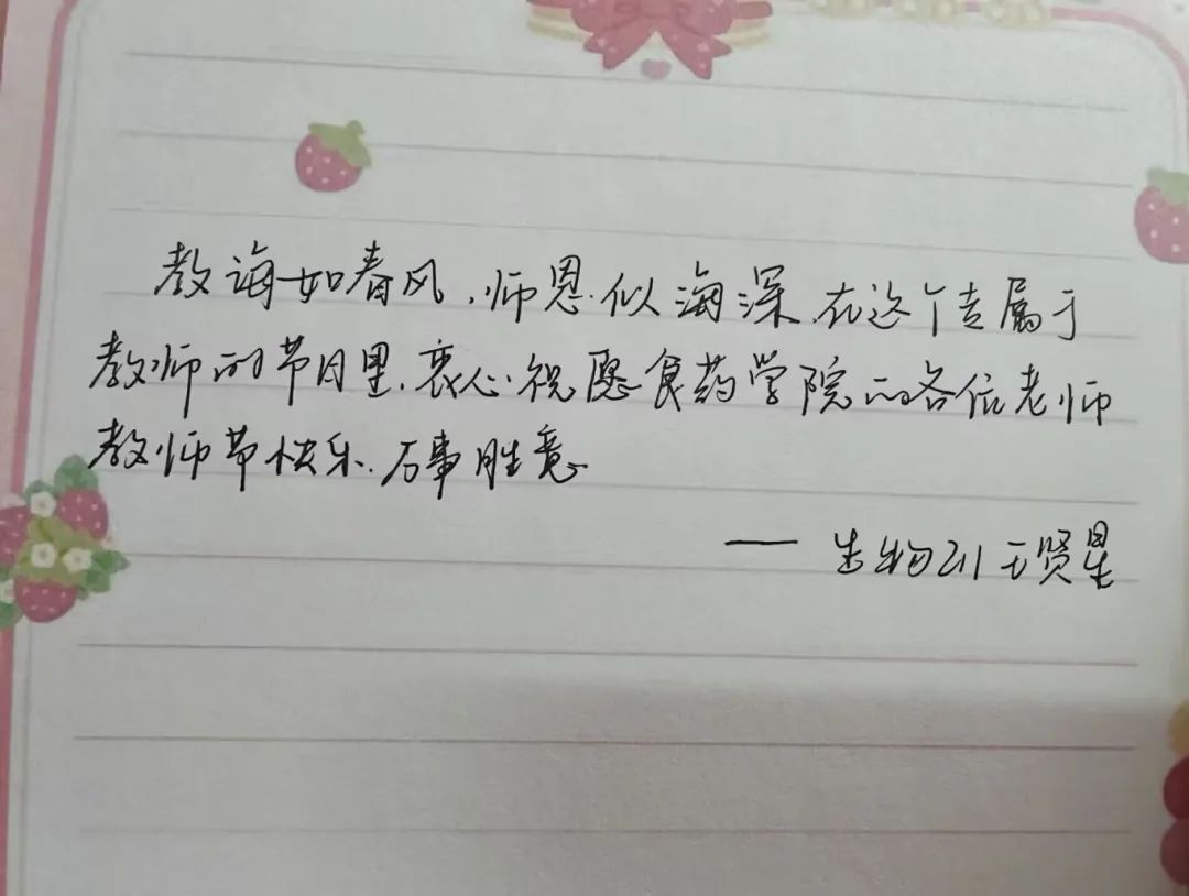 以笔为媒,纸短情长,在教师节来临之际,食药学院全体学子祝老师们,教师节快乐,桃李满天下!