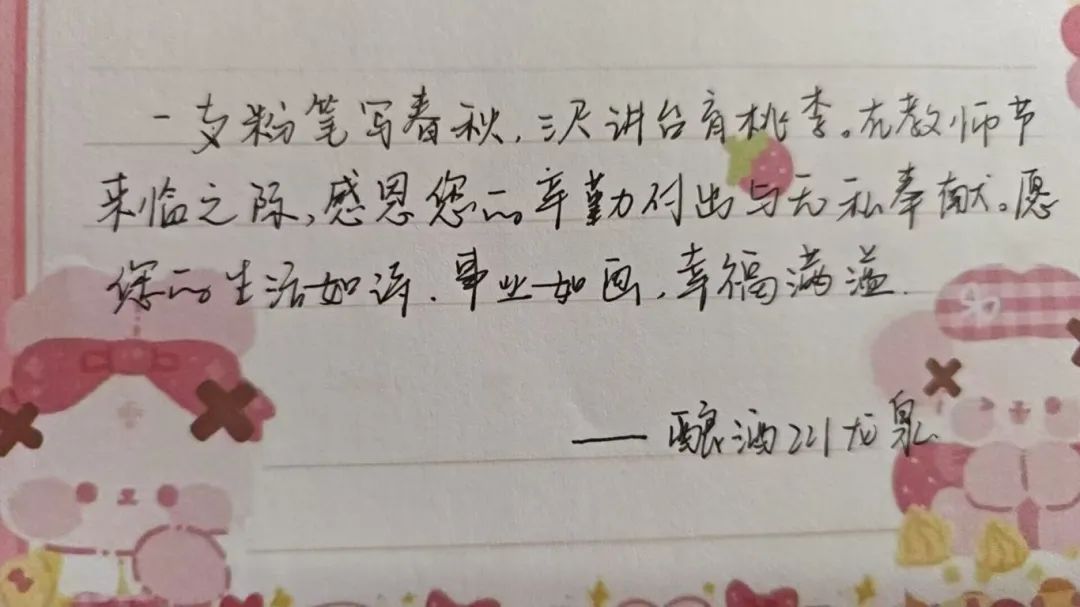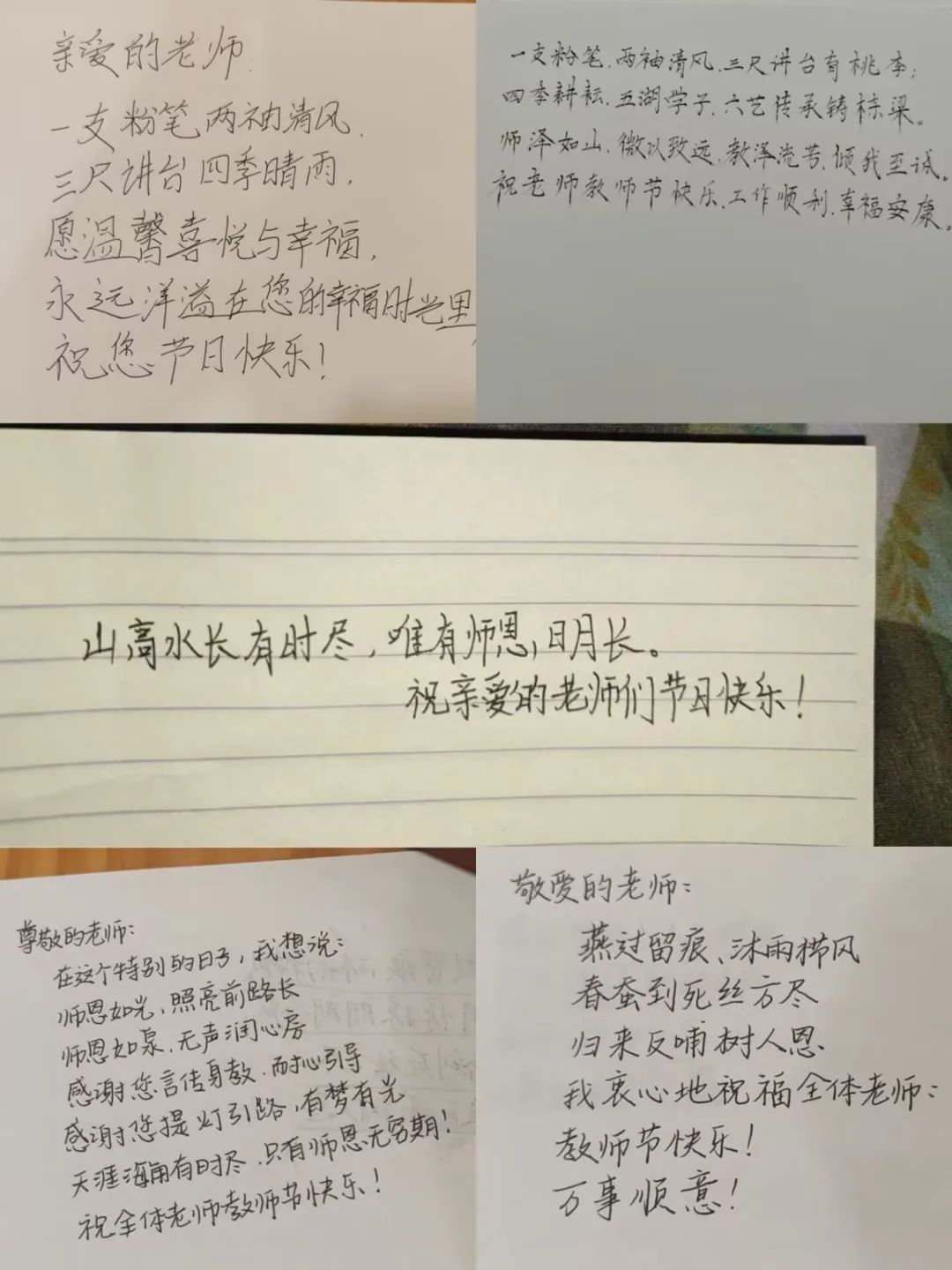 在教师节来临之际,食药学子满怀感恩之心,以笔为媒,将自己的感激之情和对老师们的崇敬之意融入字里行间,通过这样朴素的方式,我们共同庆祝这个属于教师的光荣节日,向老师们致以最崇高的敬意和最温馨的祝福!