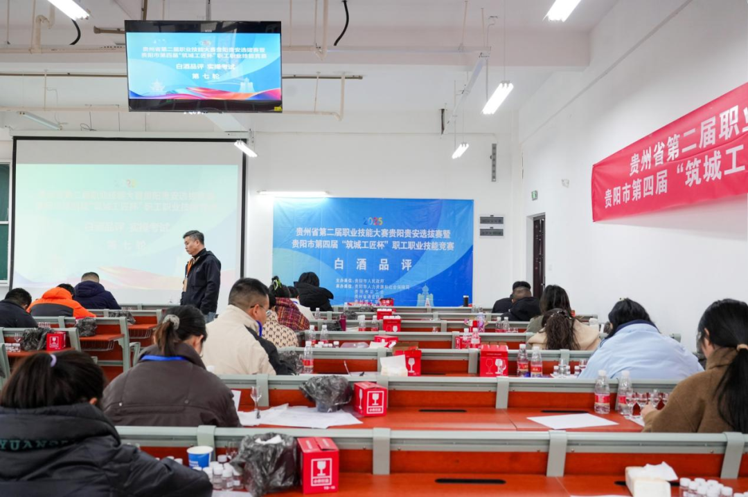 2025 年 3 月 30 日,贵州省第二届职业技能大赛贵阳贵安选拔赛暨贵阳市第四届“筑城工匠杯-白酒品评”职工职业技能大赛在贵州理工学院圆满落幕。作为赛事承办单位之一,贵州理工学院食品药品制造工程学院以高水平的技术支持和高质量的后勤服务,为赛事筹备和运行提供了坚强保障,彰显了高校服务地方产业的决心和能力。