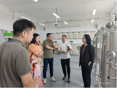 7月22日,贵阳经济开发区欣城城市运营服务有限公司(以下简称欣城城运公司)总经理吴萍、副总经理江波、市场拓展部副部长陈青青、工作人员阮桂梅一行莅临学院开展合作交流活动。学院党总支书记顾亚丽、副院长朱国飞和教师代表陪同来访嘉宾先后参观了学院精酿啤酒生产线、果酒生产线和产品展示台,实地了解了生产线的运行模式、技术特点及科研支撑情况,直观感受了我院在实践教学与科研转化方面的基础与优势。