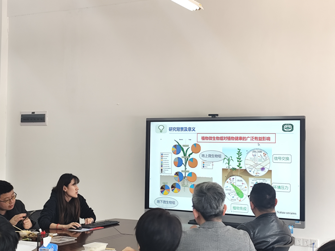 本次午餐会由两位主讲老师带来精彩的报告。第一位主讲老师是朱强博士,研究方向为植物微生物相互作用及微生物资源开发与利用。朱博士的报告题目为“内生真菌调节代谢物水平重塑穗微生物组降低水稻穗腐病机理研究”,通过微生物组学与代谢组学结合可培养分离手段与植物生理生化分析,揭示了内生真菌楝香拟茎点霉降低水稻穗腐病的微生物生态学机制,通过操纵植物地下组织来调控地上微生物群落的功能,为控制农业生产中植物病害和环境污染物提供实验和理论依据。