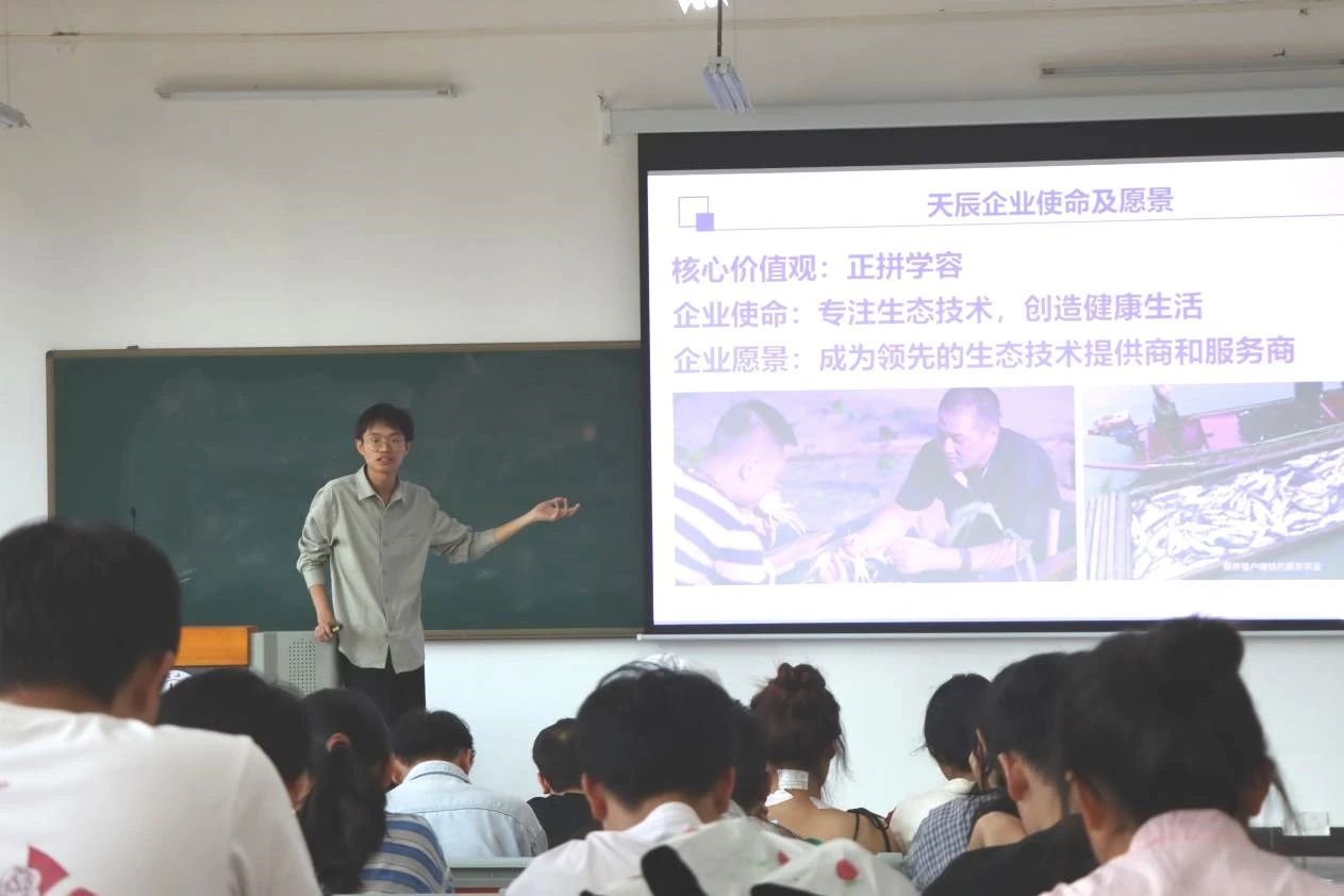 招聘会上,湖北至正天辰生物科技有限公司负责人李杰从公司的基本情况、地理位置、发展历程、岗位需求以及薪资福利等方面,向同学们全面介绍公司情况,并进行现场答疑。