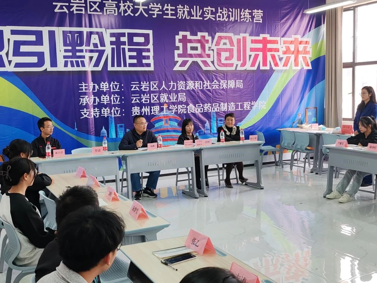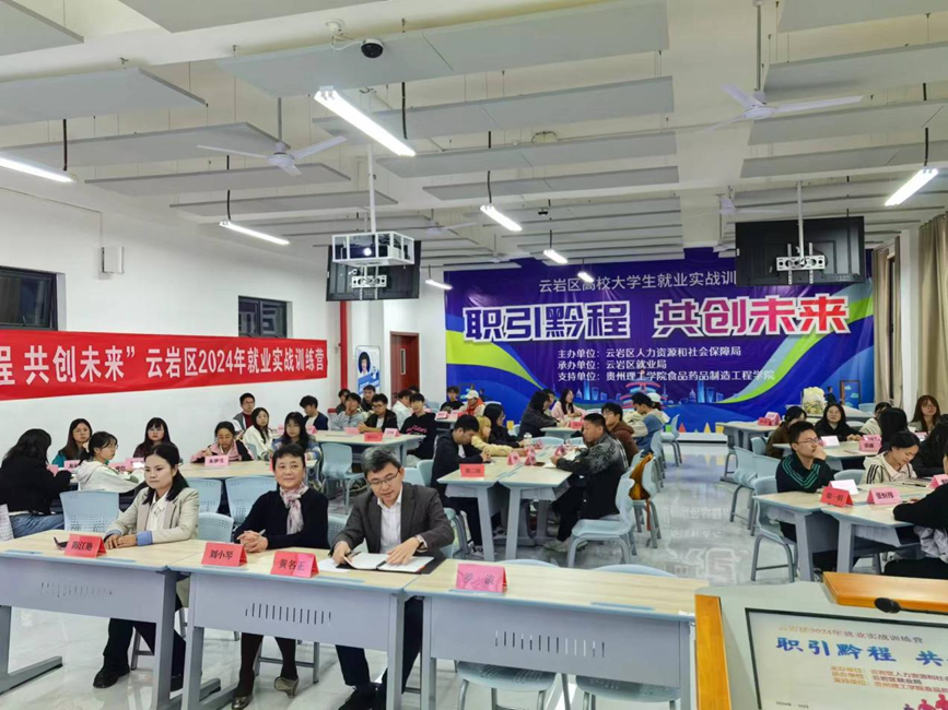 2024 年10 月 8日至10日,云岩区就业局、云岩区人力资源和社会保障局在食品药品制造工程学院举办了为期三天的“职引黔程,共创未来”就业实战训练营活动。此次活动吸引了 60余名来自食品制造工程学院的2025届毕业生参加。本次就业实战训练营为学院2025届毕业生了解就业市场、提升求职技能提供了帮助,也为同学们在贵州理工学院10月10日举办的秋季大型双选会的求职中提供了有效指导。
