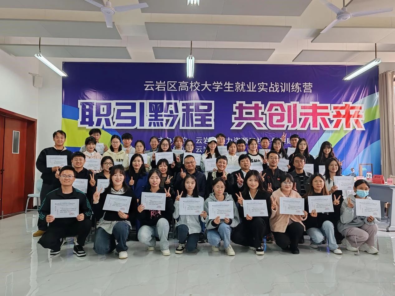 10月10日下午,蒲天竹老师组织了求职交流和成果展示,并对同学们的表现进行细致的点评。成果展示结束后举行结营仪式,食品药品制造工程学院党总支副书记罗波和云岩区就业局段妍科长依次对本次活动进行小结。紧接着,贵州理工学院副校长杨鹏作结营致辞,他高度肯定了本次训练营的成果,并向云岩区人力资源和社会保障局所提供的宝贵学习机会表达了衷心的感谢,他对同学们的未来发展寄予厚望,杨鹏副校长还为完成课程的学员颁发结业证书,鼓励他们在职业道路上继续追求卓越。训练营结营后师生合影留念,本次活动顺利结束。