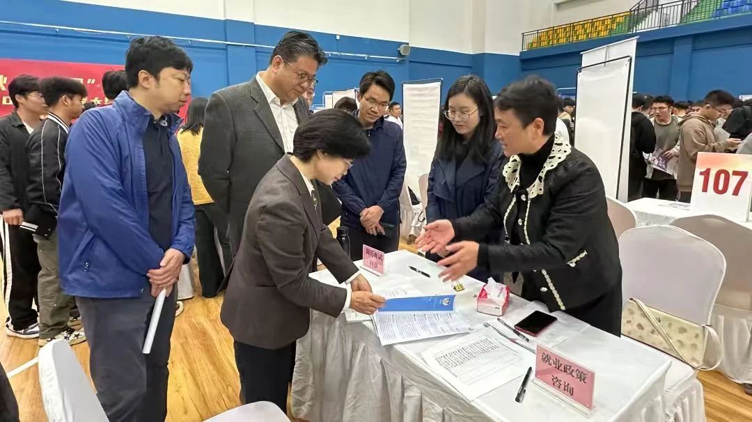 10月10日上午,同学们在贵州理工学院体育馆参加贵州理工学院2024年秋季大型双选会。中国医药集团有限公司、双林生物制药有限公司及浙江东邦药业有限公司等知名企业参与此次招聘会,同学们结合在训练营中学到的面试技巧,积极投身应聘实战。期间,训练营指导老师为学生们提供了实时的咨询和指导,帮助他们多角度感受招聘面试氛围,使其更好地应对招聘环节,为同学们答疑解惑。招聘会期间,学校党委书记苏向东及贵阳市相关领导到实战训练营咨询处了解了相关情况,并对工作给予了肯定。