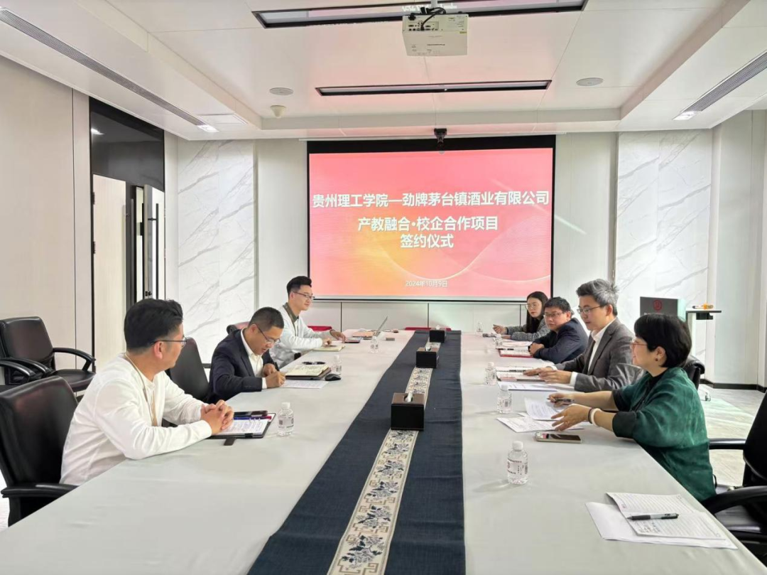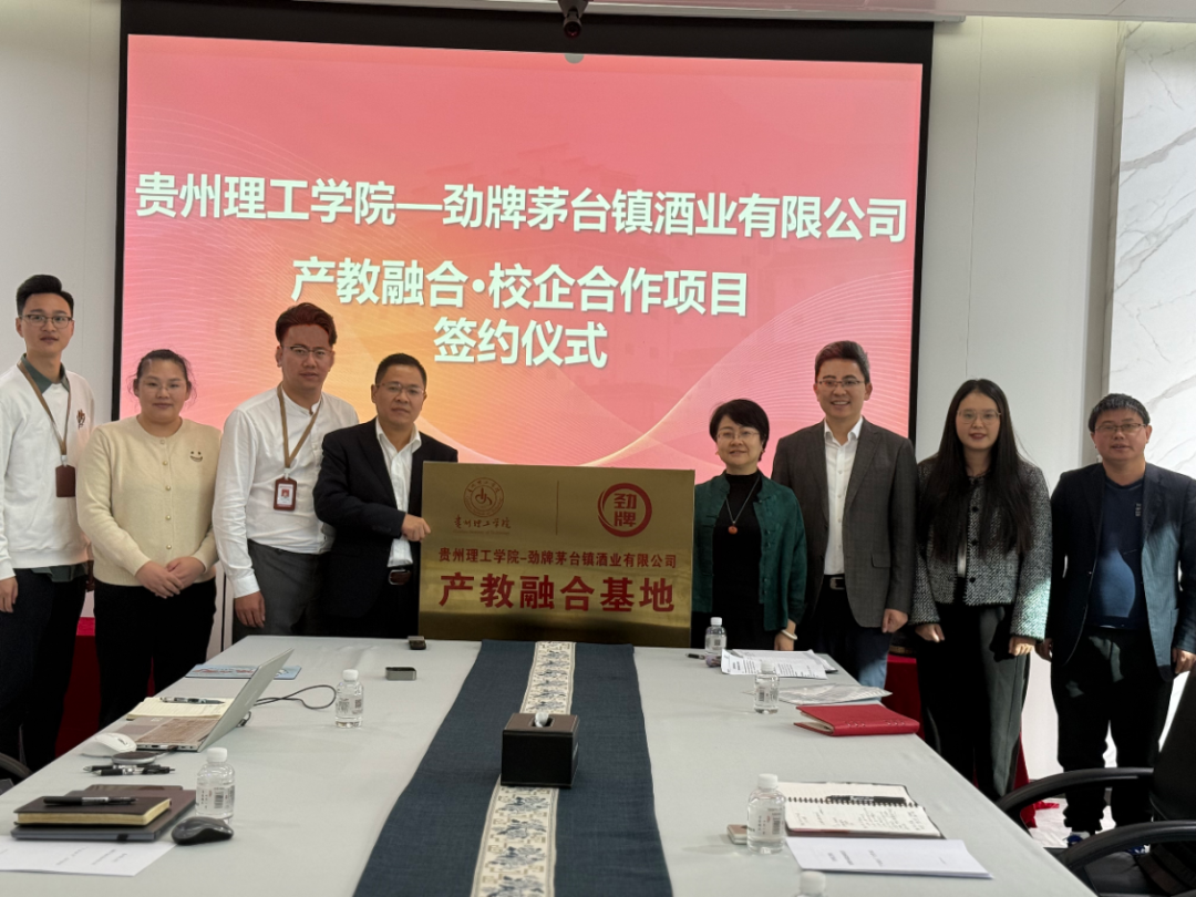 劲牌茅台镇酒业有限公司是位于贵州省仁怀市茅台镇酱酒核心产区的知名白酒生产企业,公司秉承传统酿造工艺与现代科技相结合的理念,致力于生产高品质的酱香型白酒。根据合作协议,双方将共同建设产教融合基地,座谈会后,双方举行“贵州理工学院校外产教融合基地”授牌仪式。