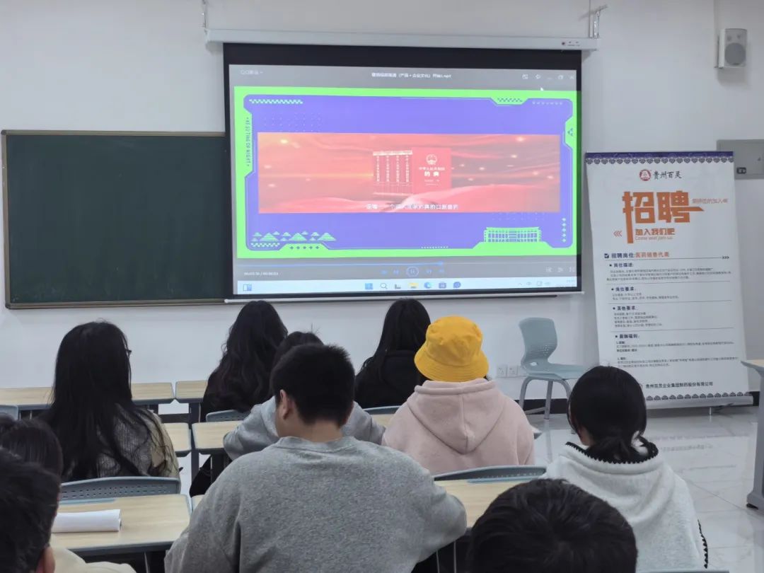 在招聘会现场,贵州百灵招聘负责人徐经理通过企业宣传片展示、PPT讲解等形式,向毕业生详细介绍了公司的发展历程、核心业务、办公环境及未来战略规划。宣讲过程中,同学们展现出浓厚兴趣,围绕岗位技术要求、实习转正机制等问题踊跃提问,徐经理结合企业用人需求逐一解答。