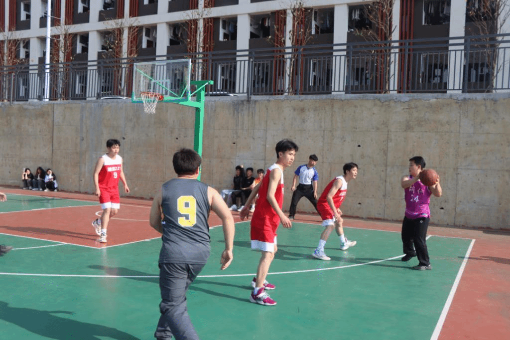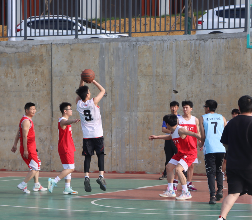 当天的两场比赛分别由教师队对阵酿酒221班,酿酒231对阵酿酒232班。比赛开始前双方球员合影,团总支书记(学生科科长)、组织员林大任分别为两场球赛开球。随着比赛开始,球员们奋力拼搏,每一次精准的投篮、每一次灵巧的过人、每一次坚固的防守都赢得了观众席上同学们的阵阵喝彩,快速移动的身影和篮球击打地板的节奏性弹跳声此起彼伏,构成了赛事最激动人心的乐章。比赛过程精彩不断,赢得了场边观众的阵阵掌声和欢呼,经过激烈的角逐,最终酿酒221班以51:44战胜了教师队,酿酒232班67:50战胜了酿酒231班。