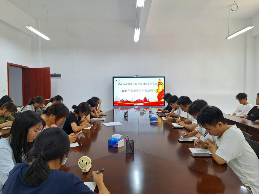 为全面提升学院团总支、学生会干部的素质水平,进一步增强团总支、学生会的政治意识和工作技能,发挥学生干部的引领作用,9月4日下午,食品药品制造工程学院举行2024年秋季团总支、学生会学生干部培训会。会议由院学生会轮值主席龙泉主持,学院团总支书记(学生科科长)、组织员林大任担任主讲,学生团总支副书记、学生会主席团成员及各部门负责人等20余人参加。