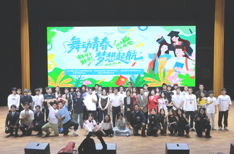 2025年5月29日晚,学院联合人工智能与电气工程学院、航空航天工程学院、机械工程学院、体育学院等五个学院举办2025届毕业生毕业晚会,晚会在蕴华楼大礼堂隆重举行,各学院师生共同参与这场青春盛会。
