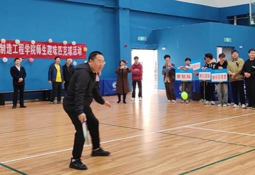 2025年10月30日下午,食品药品制造工程学院在北体育馆成功举办师生趣味匹克球比赛。赛事以“师生同心,运动同行”为主题,共8支队伍(其中1支教师队、7支学生队)同场竞技,近百名师生观赛。