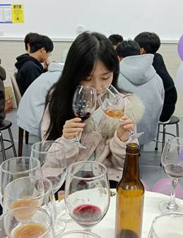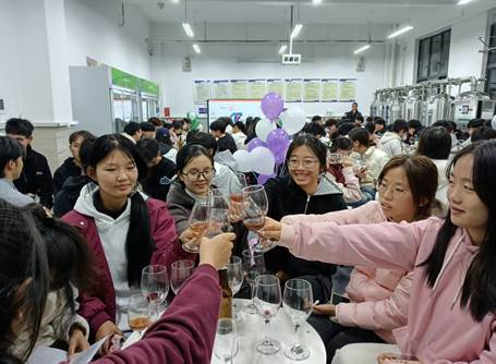 随后的互动品鉴环节更添趣味,同学们手持酒杯,在老师的引导下学习观色、闻香、尝味的品鉴技巧,现场碰杯声与讨论声交织,轻松的氛围让专业知识变得鲜活易懂。