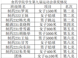 通过校运会的备战和比赛,增强了学院师生们锻炼身体的热情,展现了参赛运动员顽强拼搏的精神。希望每位食药人,把运动的热情和精神延伸到今后的学习和工作中,不断挑战自我,争创佳绩!