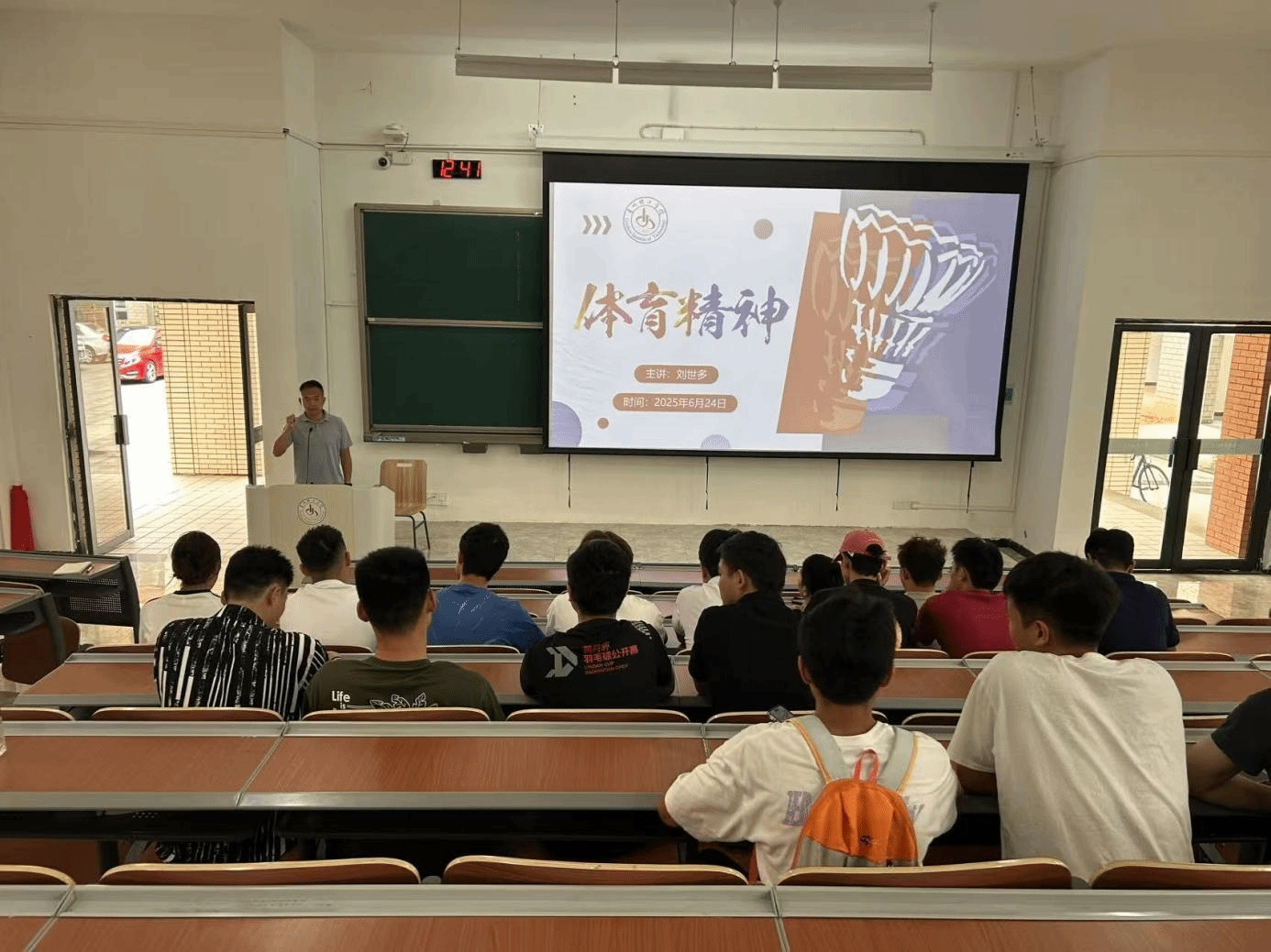 2025年6月24日,阳光倾洒,贵州理工学院G1110教室里,一场意义深远的思想讲座如期举行。本次讲座由刘世多院长主讲,面向体育学院学子,紧扣“体育精神”与“学业规划”两大主题,为同学们呈上了一场深刻且极具启发性的思想盛宴。