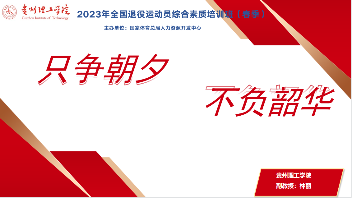 为帮助退役运动员提升综合素质实现成功转型,国家体育总局人力资源开发中心于4月10日-14日举办全国退役运动员综合素质培训班(春季)。此次培训班以线上方式举办,参加人员为各省区市已停训或即将退役的优秀运动员100人,我院副教授林丽老师作为退役运动员转型典型,受邀作退役转型经验主题发言。