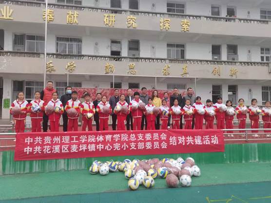 为认真贯彻落实习近平总书记视察贵州重要讲话精神,深入推进体教融合工作,促进体育项目扎实服务乡村振兴,以结对共建为着力点,鼓励支部党员发挥学科特长服务基层,充分利用体育学院师资、教学、科研等方面资源优势,与结对共建支部加强交流学习、共同提升。10月22日上午,体育学院党总支副书记王凯率队前往花溪区麦坪镇中心完小开展“我为群众办实事”实践活动,出席此次活动的有麦坪镇党委副书记雷红梅,镇中心完小校长曹家治等。