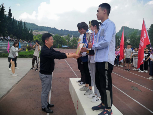 在轻松愉快的颁奖乐中,体育教学部党总支书记任永开、理学院副书记袁小松和大数据学院副书记史明华分别为获得团体第一名、第二名和第三名的学院颁发了奖杯和奖牌。