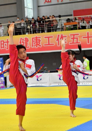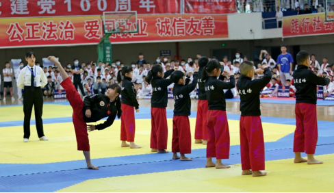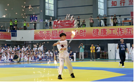 开幕式上,现场进行了啦啦操、双截棍、跆拳道舞蹈和团体品势表演,展现了充满动感的的青春与活力。