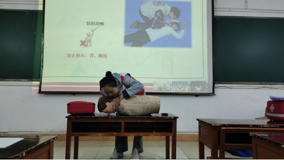 本次应急救护员培训班采取理论知识讲授和实践操作相结合的教学模式。上午主要是由来自贵州省红十字会救护培训指导中心的两位指导员围绕心肺复苏及AED(自动体外除颤器)的使用,呼吸异物的排除、创伤救护技能(止血、包扎、骨折固定及安全搬运)常见急症现场的处理的理论知识进行了详细的讲解。