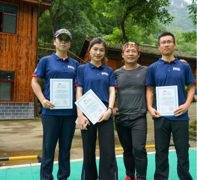 (通讯作者 侯生辉)6月20日-24日,我院三名教师参加贵州省首届高空绳索培训,完成各项技术学习和考核。此次培训内容包括绳索的上升和下降,通过绳结、锚点,横移、过偏移点,负重、救援,实地岩壁攀援以及装备管理等。