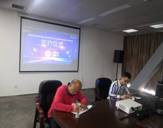 体育学院院长高徐与贵州芒果汇体育发展有限公司负责人王艺然签约现场