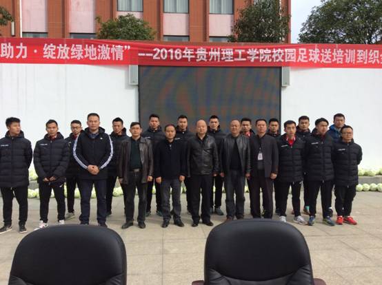 由于我校在高校足球工作中的出色表现,省教育厅决定由我校对口帮扶织金县,主题为:“青春助力·绽放绿地激情 ”,青春代表了贵州理工学院的学生,助力则表示了扶贫献爱心,绿地是足球场,希望足球扶贫可以让更多的孩子都能感受到足球的魅力。