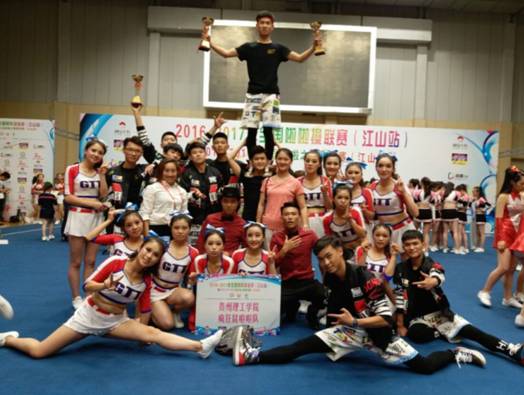 (体育教学部 林莉)2016-2017年全国啦啦操联赛(江山站)暨“中国啦啦之星争霸赛”于2017年6月2~4日在浙江省江山市体育馆盛大举行。本次大赛吸引了来自全国各地的五十五支队伍,一千四百多名运动员参与。秉承着以“知行至善,厚积薄发”校训的贵州理工学院也相应派出我校疯狂鼠啦啦操俱乐部作为贵州省唯一的一支代表队参与此次比赛。