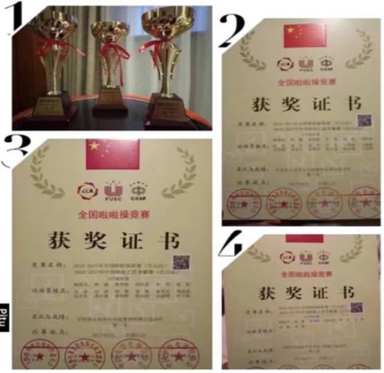 赛场上,队员们精彩的展示,整齐的动作,灿烂的笑容无一不打动着每一位评委,感染着每一位观众。功夫不负有心人,在队员们辛勤训练,以及学校各位领导,教练员林丽老师,苏雪姣老师的大力支持与协作下,我校代表队捷报频频传出,最终获得了学校俱乐部青年丙组集体街舞自选动作“第一名”。学校俱乐部青年丙组集体花球自选动作“第一名”。学校俱乐部青年丙组双人街舞自选动作“第一名"的优异成绩。由于表现突出,赛事组委会给我校颁发了派遣函,获得代表中国参加2017-20018年国际啦啦操赛事的资格。